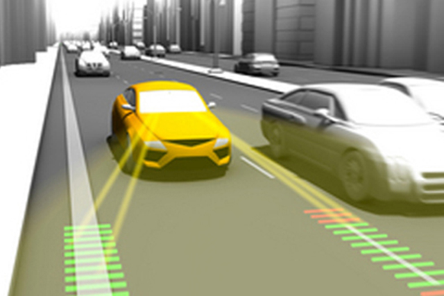 车辆偏离预警系统:通过摄像头或者红外线传感器采集车道标识线,通过电脑控制器计算,在驾驶员注意力不集中及车辆无意识(不打转向灯)变线行驶时,通过语音播报、方向盘震动等给予提醒。