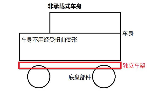 在介绍车型之前小编想先科普一个概念那就是非承载式车身。什么是非承载式车身呢?