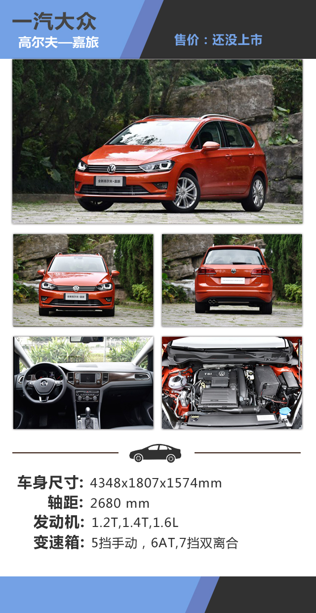 嘉旅拥有多种动力搭配,变速箱可以选择5挡手动,6AT,以及7速干式双离合,其搭配的1.4T发动机具有高功率的版本,喜欢动力的可以选择,其2680mm的轴距也为其提供充足的内部空间,遗憾的低配版本后悬挂为扭力梁;相比之前的进口版本,嘉旅的上市价格相信会降下来,喜欢旅行车的消费者可以留意一下了。