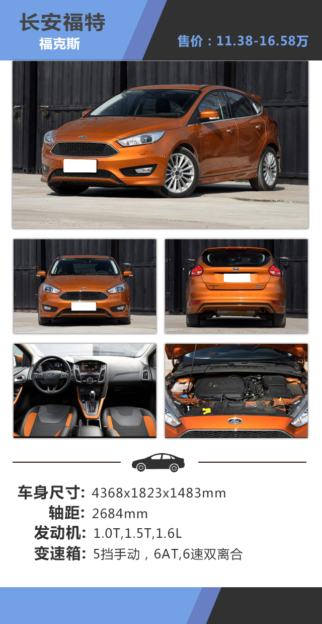 这3款车都是拥有独立悬挂的,有着不错的运动气息,速腾拥有大众一贯以来精湛的做工,在内饰的营造上也质感十足,是十分耐看的一台车,1.4T与变速箱的搭配也是大众一直以来的习惯搭配,调教十分的成熟,不过其低配的价格较高,以及配置较弱是一直被人诟病的;而福克斯在外观设计也让人有着深刻的印象,马丁脸在福特很多车型都在应用,遗憾的是前排腿部以及后排空间都比较局促。