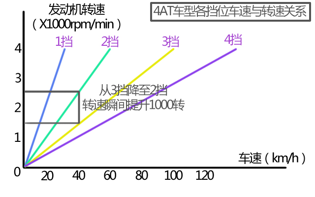 因此,4AT车型的难处就在于挡位之间齿比的差距大小,最低档1挡的齿比是必须保证的,因为起步和爬坡的需要,保证这个的前提下如果2/3/4挡的齿比差距大就意味着适应的速度区间更加广阔,但是每次换挡的动作都更加明显。