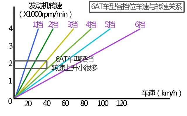 首先结构上来说4AT一定是落后于6AT的,假设两种变速箱的最高挡与最低挡的齿比都相同,那么6AT车型的齿比一定更加绵密,每次换挡发动机转速的变化也就更加小。