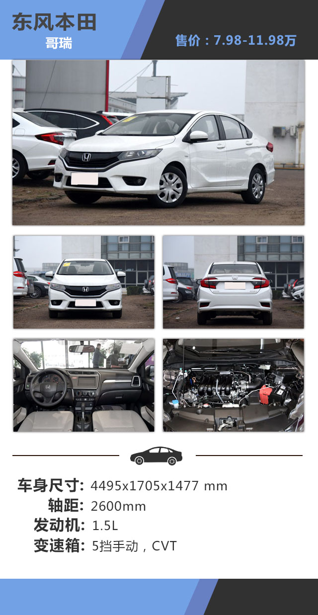 哥瑞搭配的是一台1.5L地球梦发动机,动力十足,对于一款入门级紧凑型车来说,绝对的够用了,不过不要想着偶尔撒野,它日常的调校还是偏向于不温不火,好开舒适是它骨子里的本质,不要奢求太多;入门级的CVT的配置比较一般,仅配备了遥控钥匙,后轮依然是鼓式刹车,日常仅仅只是够用,对于喜欢合资品质,预算不是很充裕的人可以考虑一下。