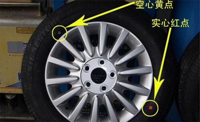 更换新轮胎后都需要做轮胎动平衡,然后在轮毂上贴上平衡块,假如安装轮胎时黄点对准了气门嘴的位置,做轮胎动平衡的时候就不需要再装个大配重铁了,而且你看到轮胎上给你贴上一排的平衡块怎么也不美观。