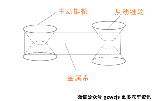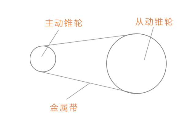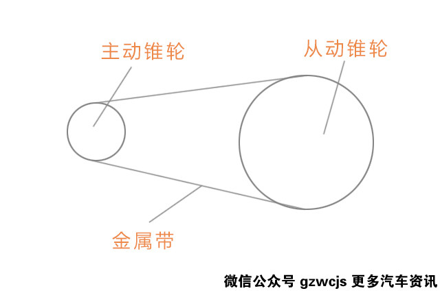我就说说关键的结构。CVT的结构其实很简单,起到变速作用的无非就是一对主动锥轮组、一条金属带还有一对从动锥轮组。