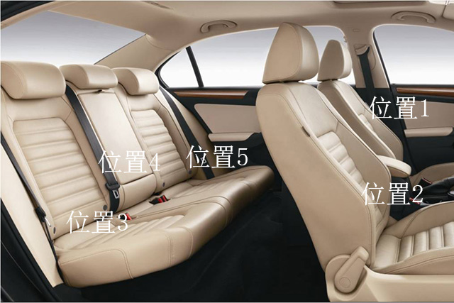 一般人都认为正驾驶后方的(位置5)是最安全的,他们认为后排前方有座椅缓冲,一旦发生事故,能很好的保护自己。其实最安全的还是驾驶员位置,因为驾驶员座位的安全气囊数最多,如果连驾驶员都保护不了,其他人就不安全了。