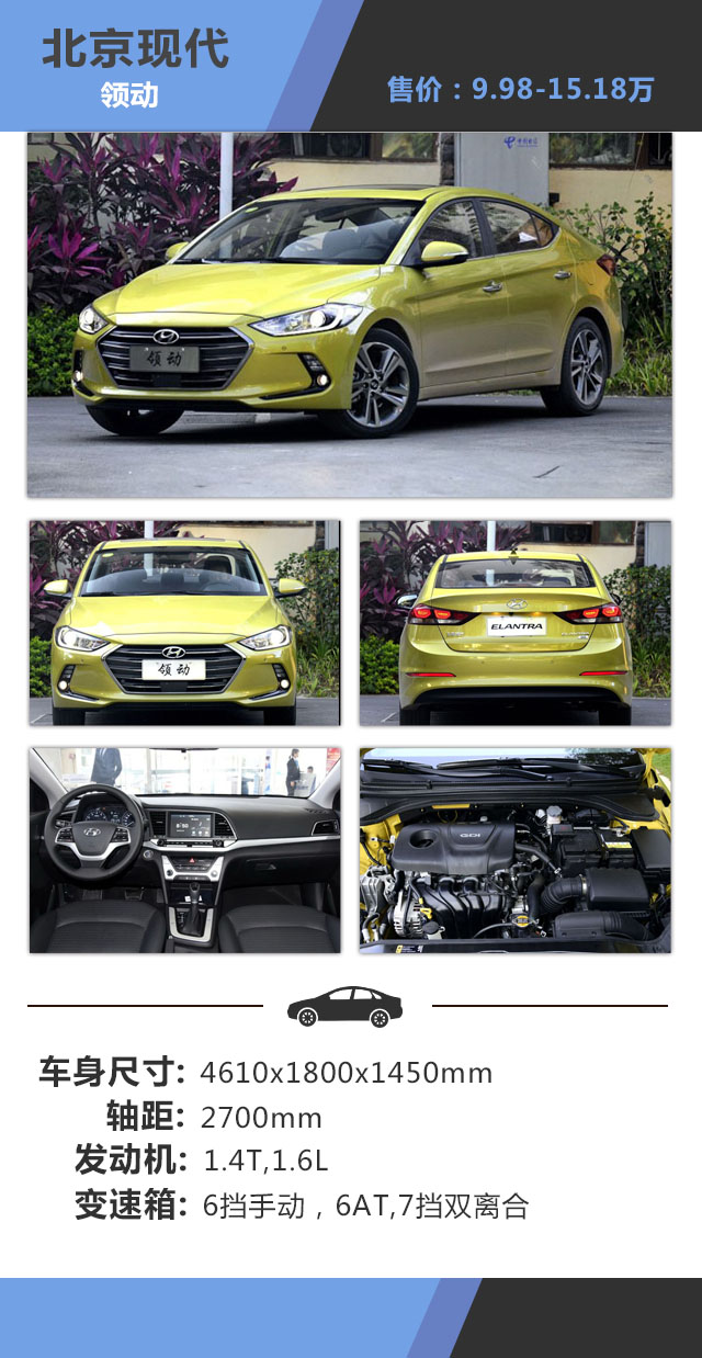 点评:领动似乎要在紧凑型级别中引领新风尚,以其高颜值杀入这个市场,紧凑型的消费者越来越年轻化,因此动感的外观才是他们的口味,现代实在太懂年轻人了,领动依然是流体雕塑理念的产物,不过这一次显得更加的激进,前脸的线条更加的凌厉,硕大的六边形进气格栅占据了差不多整个前脸,杀气十足;腰身两条突出的线条让整车显得更加的生动,中控采用简洁的布局,用料还是不错的,灰色调的内饰搭配营造出不出的运动感,车内乘坐空间基本让人满意。