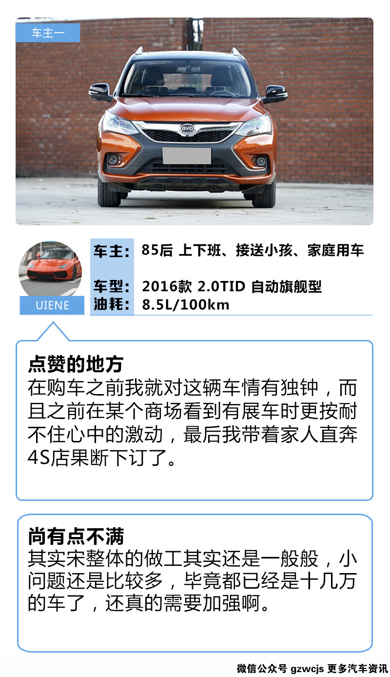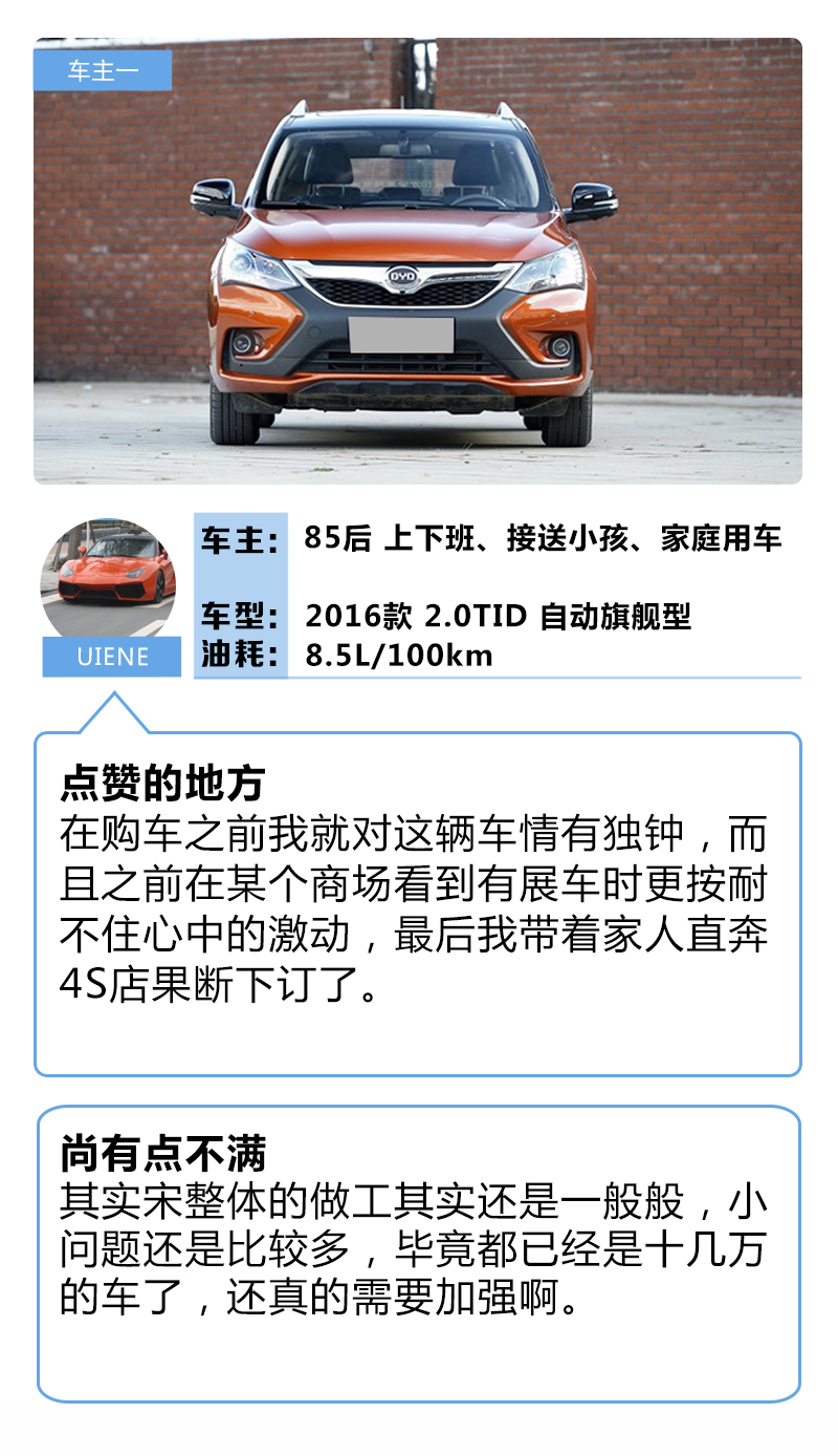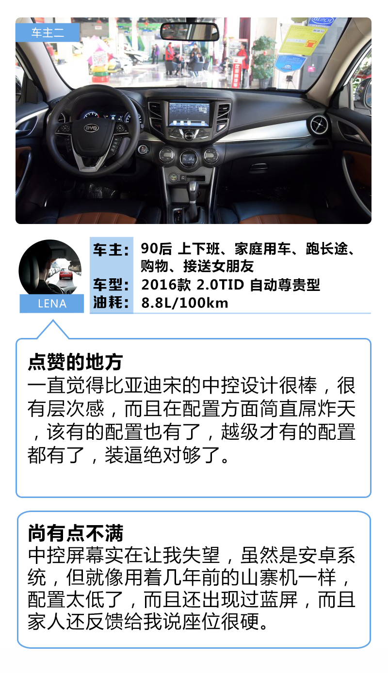 教授总结:比亚迪宋无论在外观方面还是在配置方面都亮点多多,而对于一款国产品牌车来说,在质量方面还真的需要多多加强,此次教授采访的几位车主,他们遇到的小问题也不少,但是据反馈后期厂家都进行了召回并能很好地解决问题,总的来说还是比较有良心的,而从销量方面来看,比亚迪宋的销量还保持在一个比较不错的位置,而对于准备购买宋的消费这门来说,目前在整个车系同销量最好的为1.5T的手动尊贵型以及2.0T的自动尊贵型。