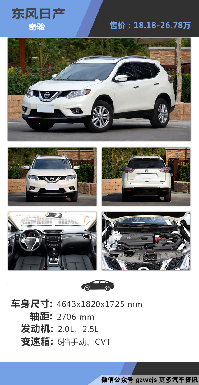 点评:奇骏是紧凑型SUV里明星车型,在越野方面的能力表现超越同级对手。老款车型的外形过于粗犷,因此未得到市场的接受。第三代推出后,时尚精致的外观也得到了消费者的认可。内饰设计也有了家族化的味道,做工用料等细节部分符合同级的主流水平。采用和天籁相近的零重力座椅,因此乘坐感受相当舒适;后排和尾箱空间在同级的中上游水准。