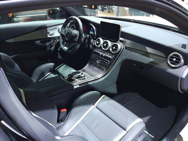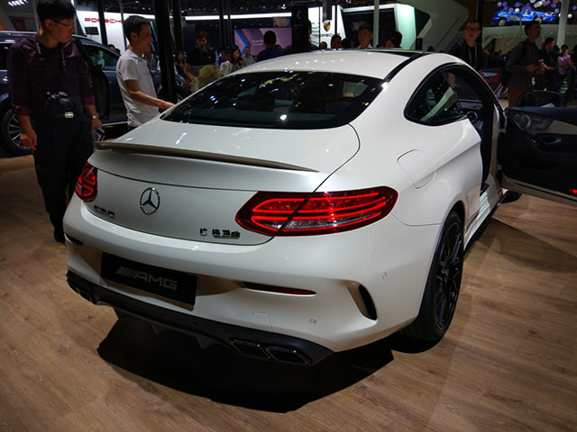 AMG C 63 S Coupe轿跑车在格栅、保险杠、外后视镜、车顶等部位都采用了黑色涂装,整体来看十分运动。