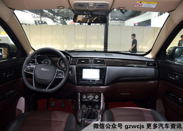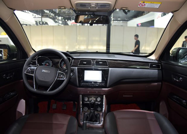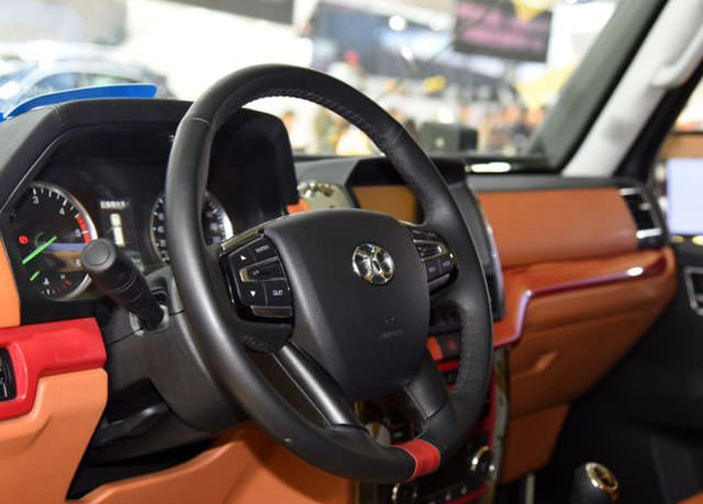 北京80内部与外观风格一致,整体运用了大量的直线条,并在中控台配有木纹装饰。