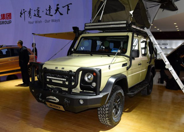 外观方面借鉴了奔驰G级的造型设计,其前脸采用了北汽家族式的镀铬五孔前格栅。