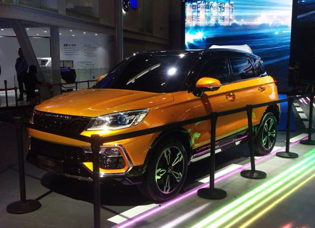 猎豹CS9外观采用了黄黑拼色设计,其前保险杠造型偏向运动风格,并带有C形的镀铬饰条。
