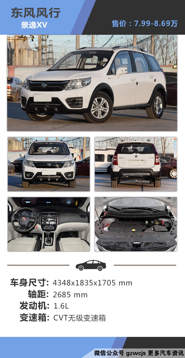 动力方面景逸XV搭载1.6L自然吸气发动机,和景逸X3有所不同,最大功率90kW、峰值扭矩155Nm。全系车型配备CVT变速箱,对于喜爱自动挡的消费者来说更有吸引力。根据价格与定位等因素,底盘方面使用的是前麦弗逊后扭力梁的结构。