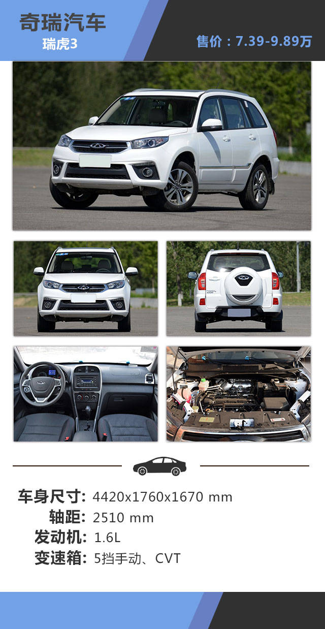 动力总成方面,瑞虎3和其他奇瑞车型相同,都采用自家研发的发动机,排量为1.6L。变速箱则有两种选择提供,一种是传统的5速手动,另一种则是同样又奇瑞自主开发的CVT无级变速箱。CVT变速箱和自家1.6L的发动机配合,默契程度颇为出色,低速跟车还是高速奔跑也都是拿捏有度。配置上的诚意度也值得称赞,提供了包括电动天窗、蓝牙电话、倒车影像和定速巡航等装备。底盘方面,前麦弗逊后双连杆的组合相比同级主流的后扭力梁结构有优势。