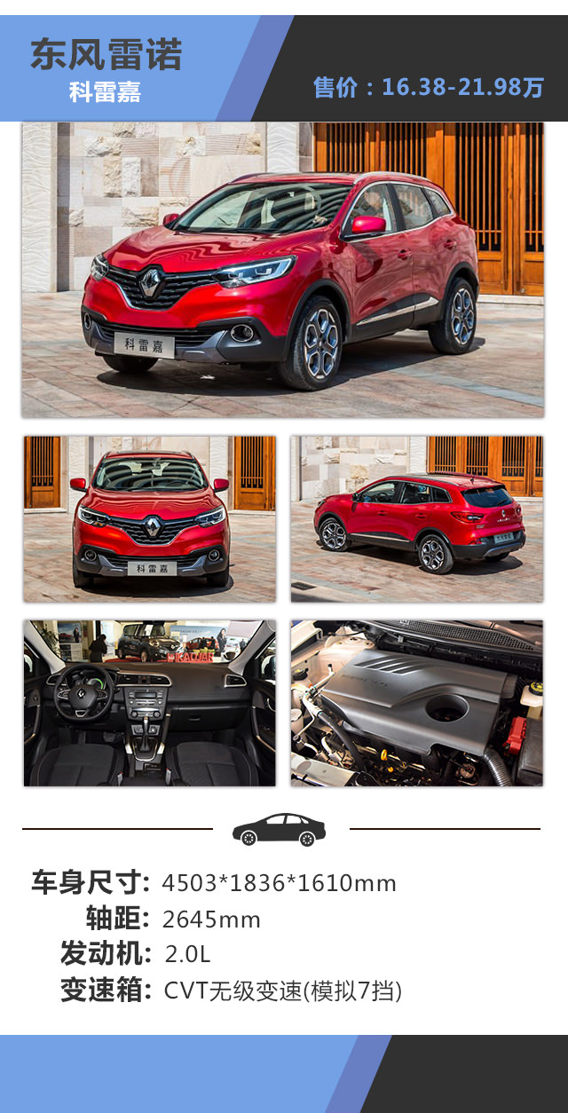 但是科雷嘉有个硬伤,它只有一种排量可选,那就是2.0L发动机。匹配CVT变速箱带来足够的平顺性,但是加速能力却不尽如意。价格略高,性价比算是一般般。但总的来说,这款还是能找到消费它的人,例如那些执着于靓丽外观的人。