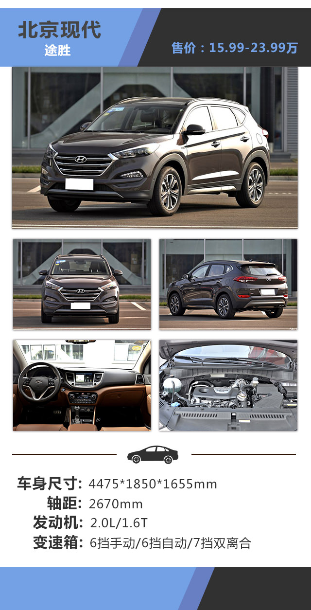 比起亚KX5更早推出的现代途胜,同样拥有着高颜值的外观,并且动力系统也和起亚KX5几乎一样。车辆的NVH做得不错,驾驶感受在同级车型中也算中上水平。教授特指就是那7速双离合变速箱,让人印象深刻。另外,这辆车的便捷配置还挺丰富的。
