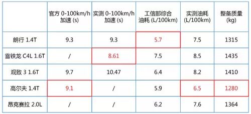 在表中,我们可以看到一个有趣的现象,大众品牌的车型在重量上竟然比日系车还轻,相信大家都会觉得很奇怪吧?其实大众品牌旗下的新车开始在MQB平台下打造,也正是得益于这个平台,大众的新车型在油耗与动力方面都有一个很好的表现;