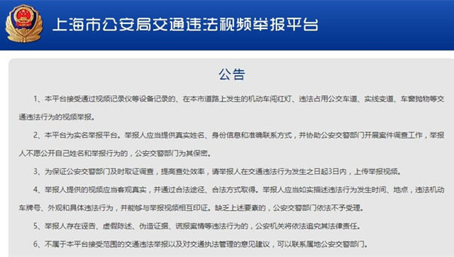 上海开通交通违法举报平台
