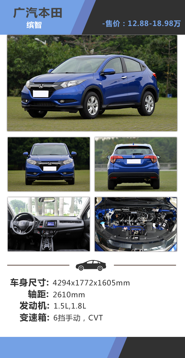 教授点评:缤智的设计比较年轻时尚,一体化的前脸设计是最近本田的设计语言,镀铬条镶陷X状的塑料面板上还是具有不错的质感的,微微上扬的腰身线条与隐藏的后门把手都很具特色,而尾部的设计相对比较平淡,不规则的尾灯形状与前大灯有着不错的呼应;来到车内可以看到本田最近的设计特点,不对称的布局很讨好如今的年轻人,而副驾驶前的空调出风口设计兼具实用与特色,在乘坐空间上,秉承本田的MM理念,整体上表现还算不错,应付两口之家完全不是问题。