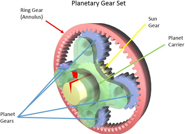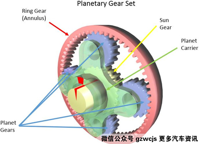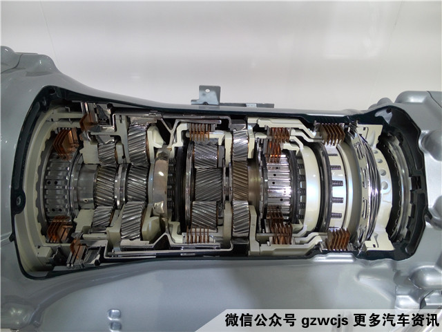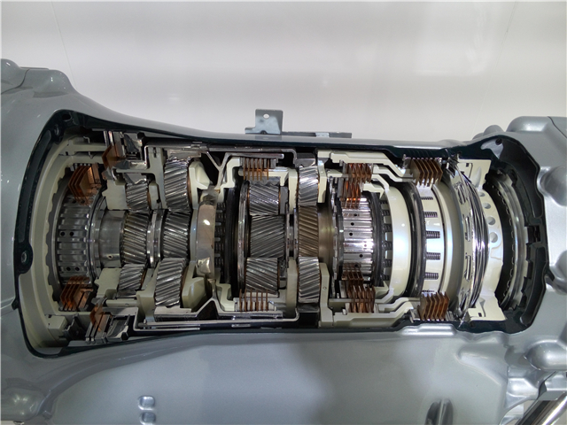 这只是一组,一个4速自动变速箱有3组这样的齿轮,上图展示的这个剖开的变速箱,这是6速的,大家可以试想想6速以上的自动变速箱,结构会有多么复杂?