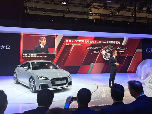 奥迪TT RS Coupe在北京车展亮相过,TT RS Coupe相当于是TT的高性能版,一般德系车加个RS都不是什么好对付的角色。而且北京车展上,TT RS是由兰博基尼的总裁进行发布讲解,看来这一款TT RS相当不简单。