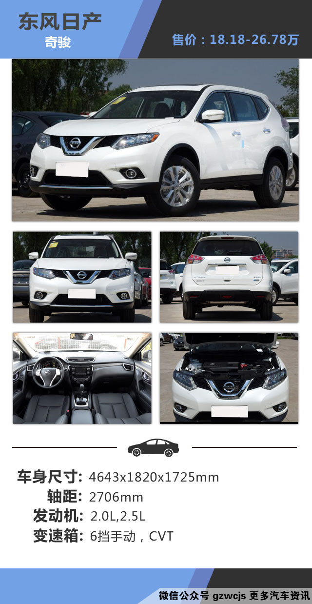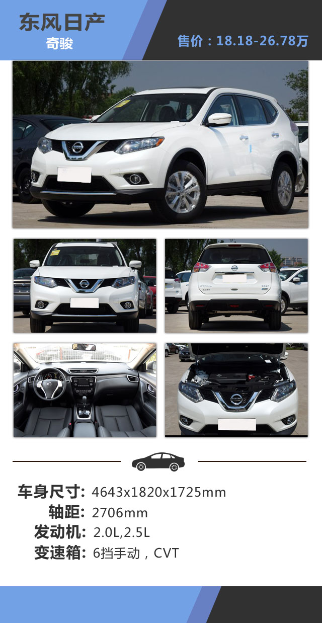 教授点评:老款奇骏方正的造型相信很多人依然印象深刻,当时在这个级别当中,其拥有着出众的越野性能,不过为了更好的面对消费者,最新的一代的奇骏更加的时尚与实用,其采用日产家族化的设计语言,整车年轻了很多,硕大的V型镀铬设计辨识度很高,虽然已经在多款车型应用,不过却也有不同的味道,车尾车型的造型也摆脱了老旧的设计,更加的时尚。而中控则采用分层的设计,高配车型搭载了大屏设计更加的符合年轻人的口味,内饰的用料也相当的不错,颜色的搭配也下了一定的功力,让不同的人都可以选择自己喜欢的设计,至于车内乘坐空间,大家不用太大担心。