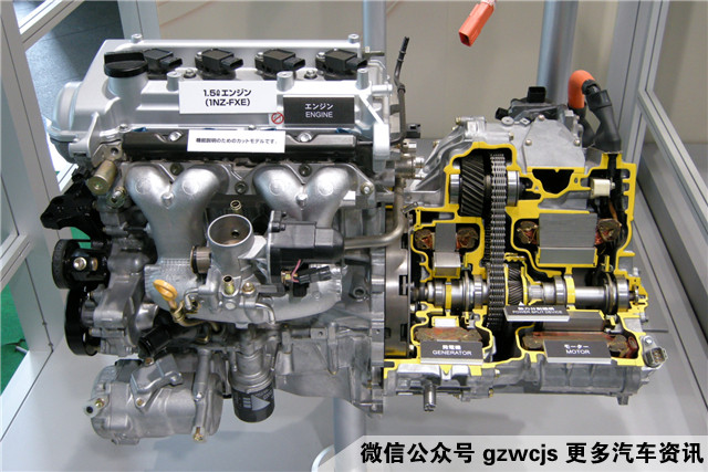而当速度起来之后,管理系统会向发动机发出启动命令,发动机和电动机一起输出动力。而当控制系统发现电池组电量不足时,连接在发动机和变速箱之间的那个电动机会变为发电机,在发动机带动下向电池组充电,车子前进由内燃机负责。同样地,在车子刹车的时候,因为速度变慢,变速箱会输出负扭矩,电动机同样会变为发电机充电。