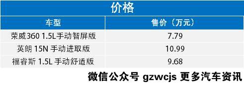 荣威3601.5L手动智屏版车型对应英朗、福睿斯的版本就是教授以上所列举的版本;从价格上来看,荣威360与英朗、福睿斯差距非常明显,便宜就没“好货”吗?大家继续往下看。