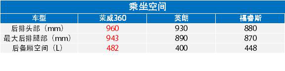 空间小的车怎么能称得上家用车呢,荣威360的后排头部空间、最大后排腿部空间以及后备厢容积都比英朗和福睿斯大不少,英朗的后备厢空间相对来说是劣势,而福睿斯的乘坐空间则是这三款车中最小的一款。