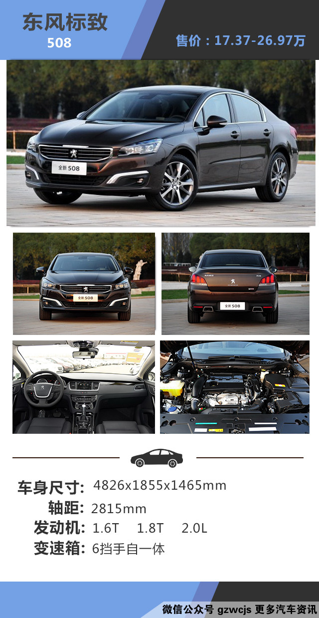 教授点评:这款508作为中期改款车型,外观变化还是蛮大的,虽然车身尺寸于老款没有变化,但是新的设计更加锐利有力,一改了以往法系车的优雅情怀。换上标致家族式前脸,高配车型增加LED大灯,轮圈更加年轻时尚,尾灯的狮爪设计也是保留了下来,个性十足。内饰方面和前款没有任何改变,法国人的浪漫在车内依旧可以感受得到。