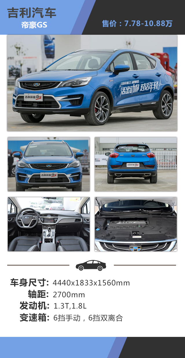 教授点评:教授相信会有很多人都在关注着帝豪GS,毕竟其较低的起步价格以及1.8L的版本还可以享受到3000元的厂家补贴,一下子让其竞争力十足;作为拥有最美国产SUV博越的小弟,帝豪GS颜值同样非常高,Cross的车身造型与目前奔驰的GLA的风格非常的类似,一下子逼格高了很多;自从其上市以来,经常有很多人在问教授帝豪GS怎样,其实作为更加细分的帝豪GS,在这个区间还真没多少的竞争对手,那么现在就看后期整车出来的口碑如何了,不过教授目测会很火。