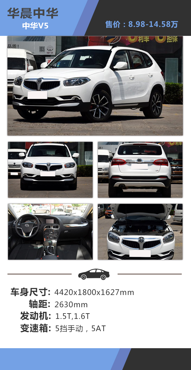 在动力搭配方面,中华V5拥有1.5T与1.6L的版本,1.6的动力教授只能是说刚够日常使用;1.5T的版本动力还是很不错的,不过涡轮的迟滞有些明显,起步阶段会感觉有些肉,还好其搭配的5AT相当聪明;为其加了不少分数;日常使用当中其电动助力的转向较轻,很轻松就可以掌控,而悬挂的调校偏硬,影响了整体舒适性。