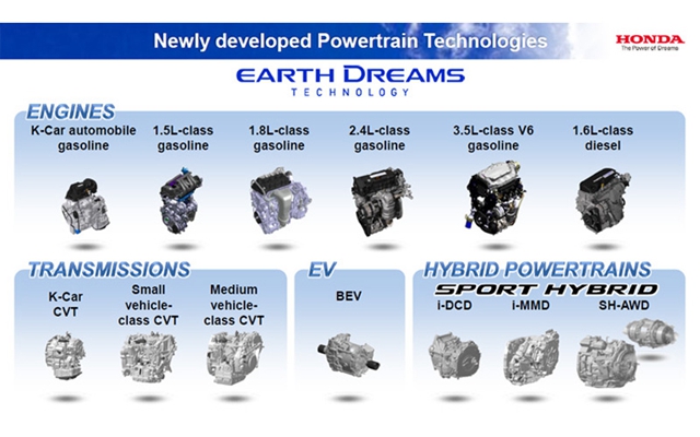 在创驰蓝天高调出世不久后,本田也推出了自己的地球梦科技,而这套东西基本是动力总成的升级,并不像创驰蓝天包含了整一个汽车工程。地球梦发动机有个最明显的特点就是应用了缸内直喷和VTEC+VTC(即可变气门升程+可变气门正时)技术,排量从1.5L覆盖至3.5L。