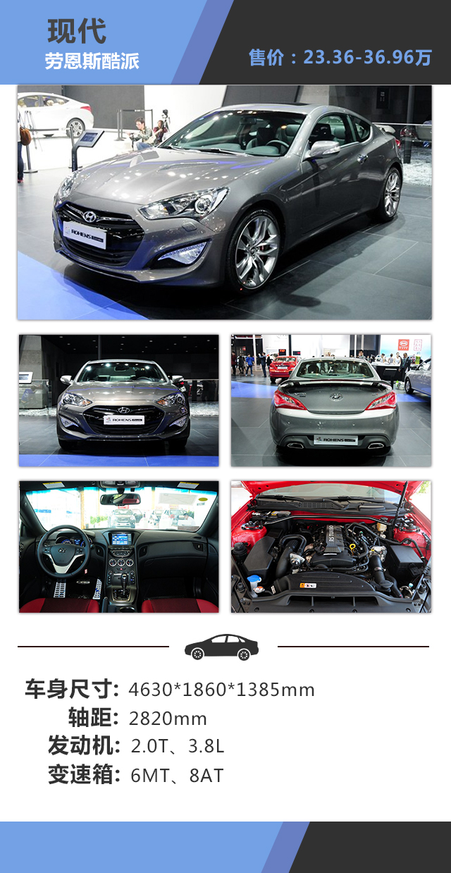 教授点评:劳恩斯-酷派是为数不多价格亲民的后驱跑车。只需要23.36万就能入手一辆乞丐版酷派。尽管乞丐版搭载的是台四缸2.0T发动机,动力表现可谓不俗,最大输出马力可达260ps,搭配8挡手自一体变速箱的话,可实现百公里加速时间仅7.2秒,六缸高配版更可达5.9秒。同时,灵敏的油门响应、良好的悬挂滤震,加上足够聪明的换挡逻辑都带来不错的操控乐趣和行驶质感。