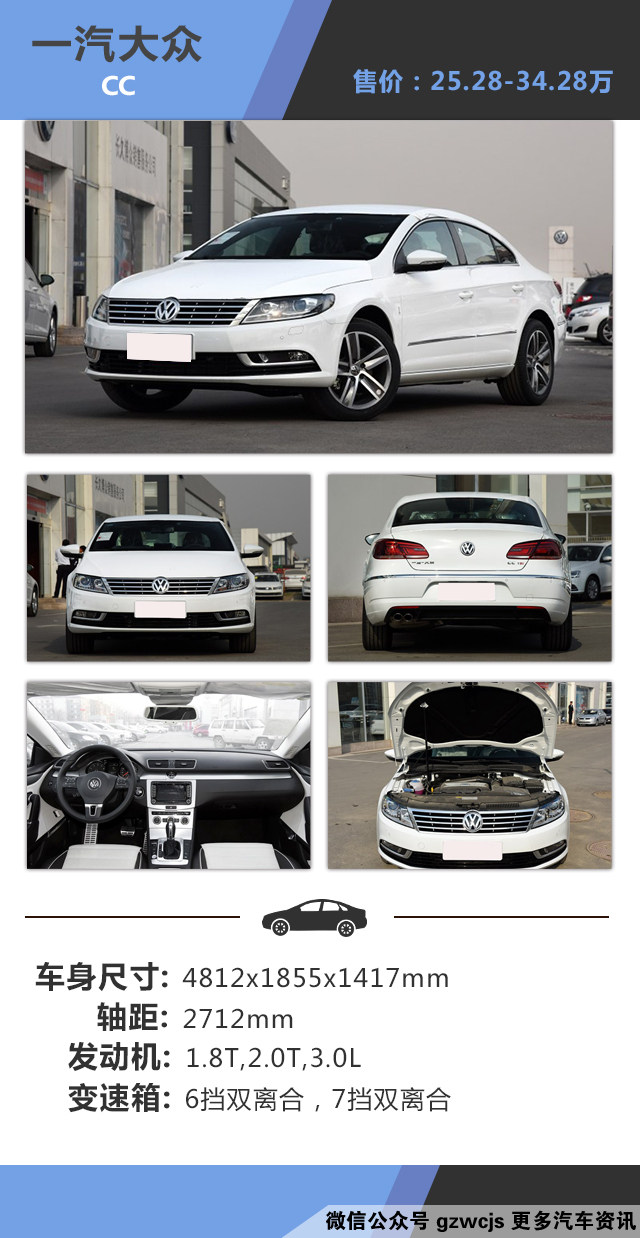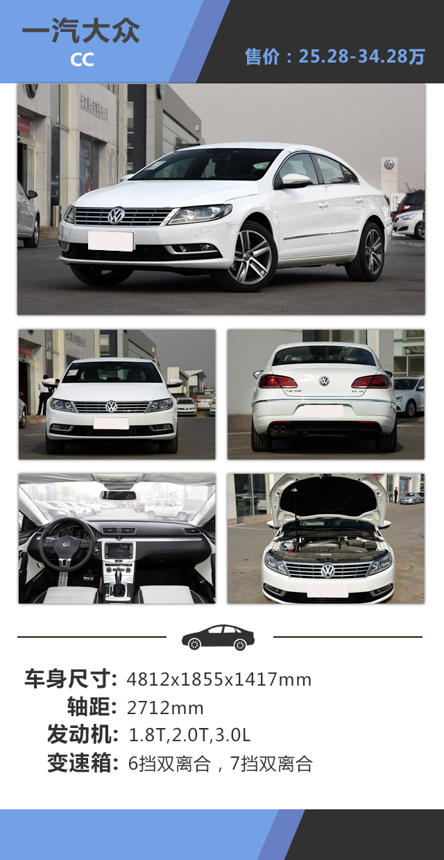 教授点评:大众CC是一款结合运动性和稳定性的标准轿跑车,无论外观还是内饰都能营造出运动气氛,最值得一提的是,大众CC采用无门框设计在同价位中也算是独一无二。