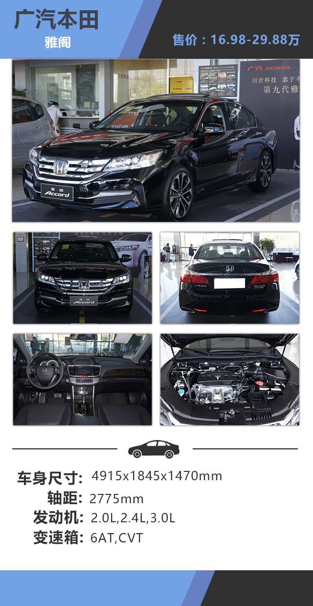 教授点评:雅阁在国内的知名度和口碑拥有着多年的积累。但由于近年的销量下滑,因此新款雅阁也果断放弃了3.0L的车型布局,这对于性能有高要求的消费者多少有点遗憾。不过好在雅阁老款3.0L版本仍然在售,而且配置方面也跟新款相差不大。