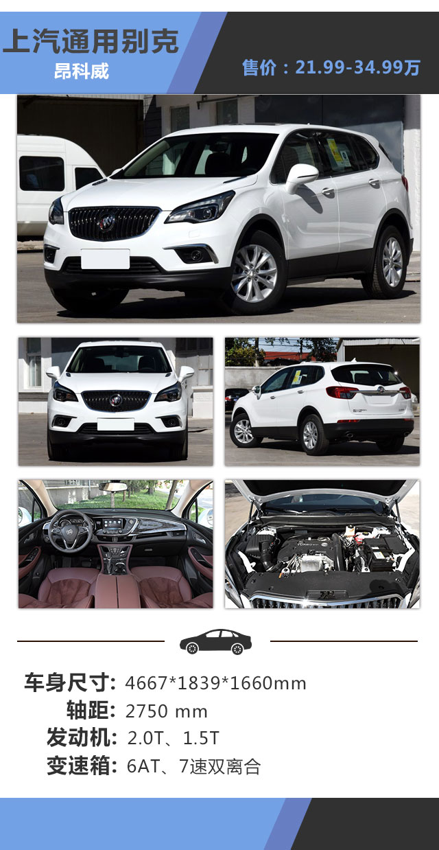 优点:外观时尚,内饰造工优秀,行驶质感舒适,1.4T车型的扭矩跟昂科威一样,达到250牛米,配合6速双离合,0-100加速时间三款车最快。