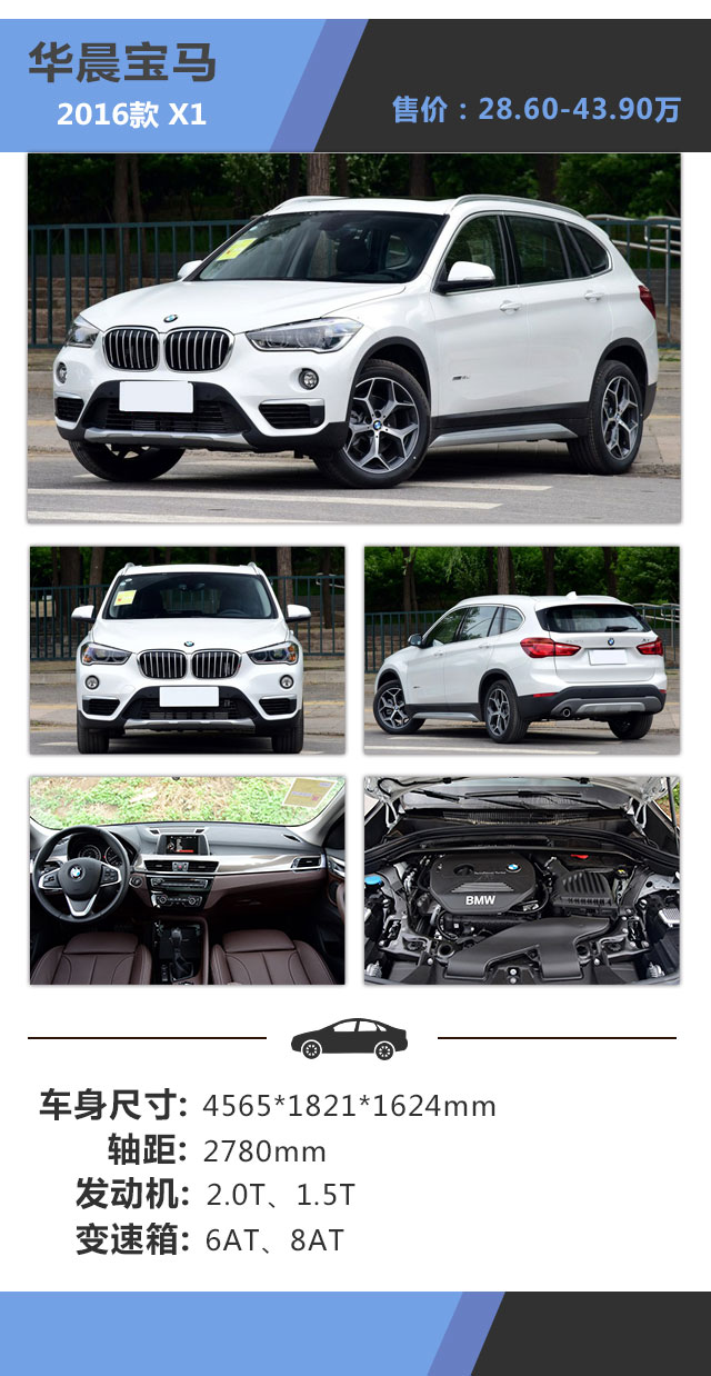 教授点评:2016款的宝马X1除了名字还叫X1之外,绝对是已经变了另外一辆车,整个车身尺寸已经是一辆中型车尺寸。宝马顺应潮流使用1.5T发动机的时候,教授曾经担心过宝马的情怀就此毁于一旦。但是,试驾过之后,感觉新款的X1不单继承了宝马优良的驾控体验,而且这款车更加平易近人,无论是价格还是尺寸还是品牌,都是你成为宝马车主的理由。当然,前提是你并不是强硬守旧派的宝马粉,要不然,宝马以后的新车分分钟让你吐血。