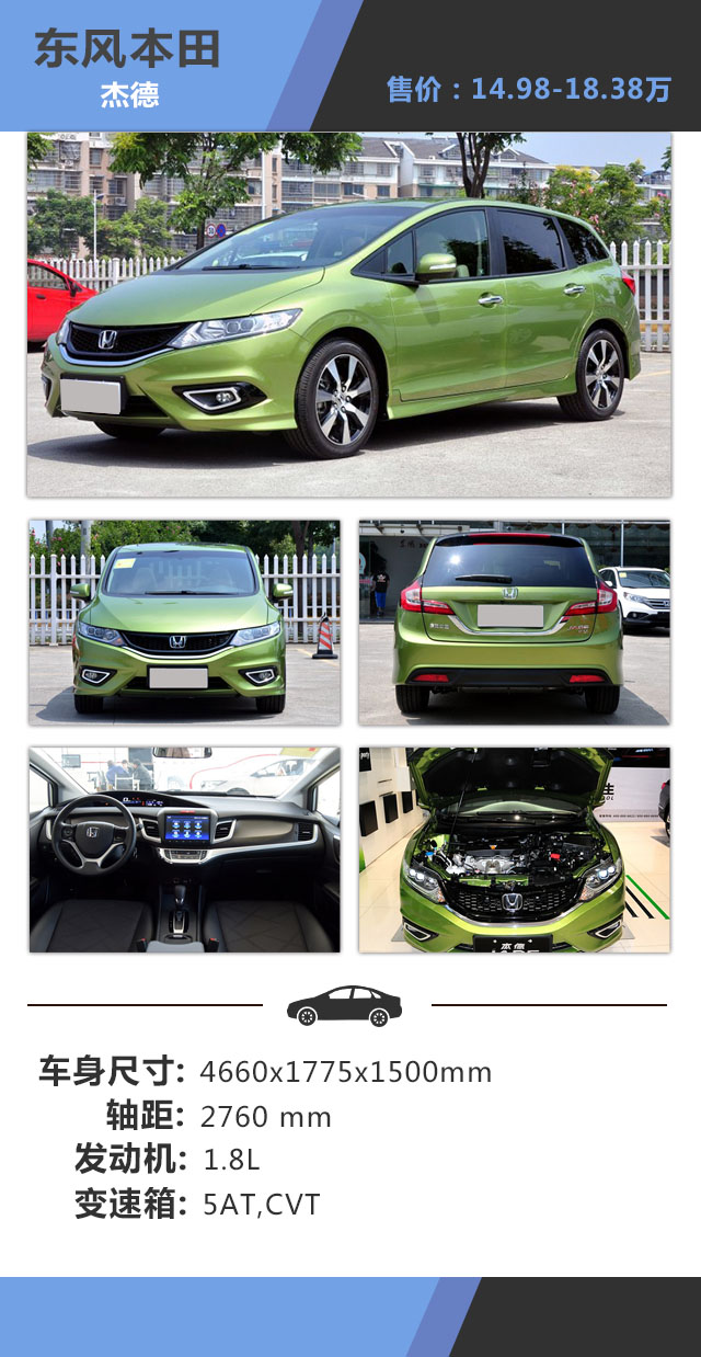 教授点评:本田杰德是这个市场的一个另类,严格意义来说其既不算旅行车也不是两厢车,相比于旅行车它没有一个非常修长而漂亮的车尾,其造型与传统两厢车也有很大的区别;无论它是什么,却不能否认其拥有流畅的车身造型,非常灵活的车内空间布局,教授觉得其车身的颜色与绿色是最配的,就像一个在林间游走的精灵。