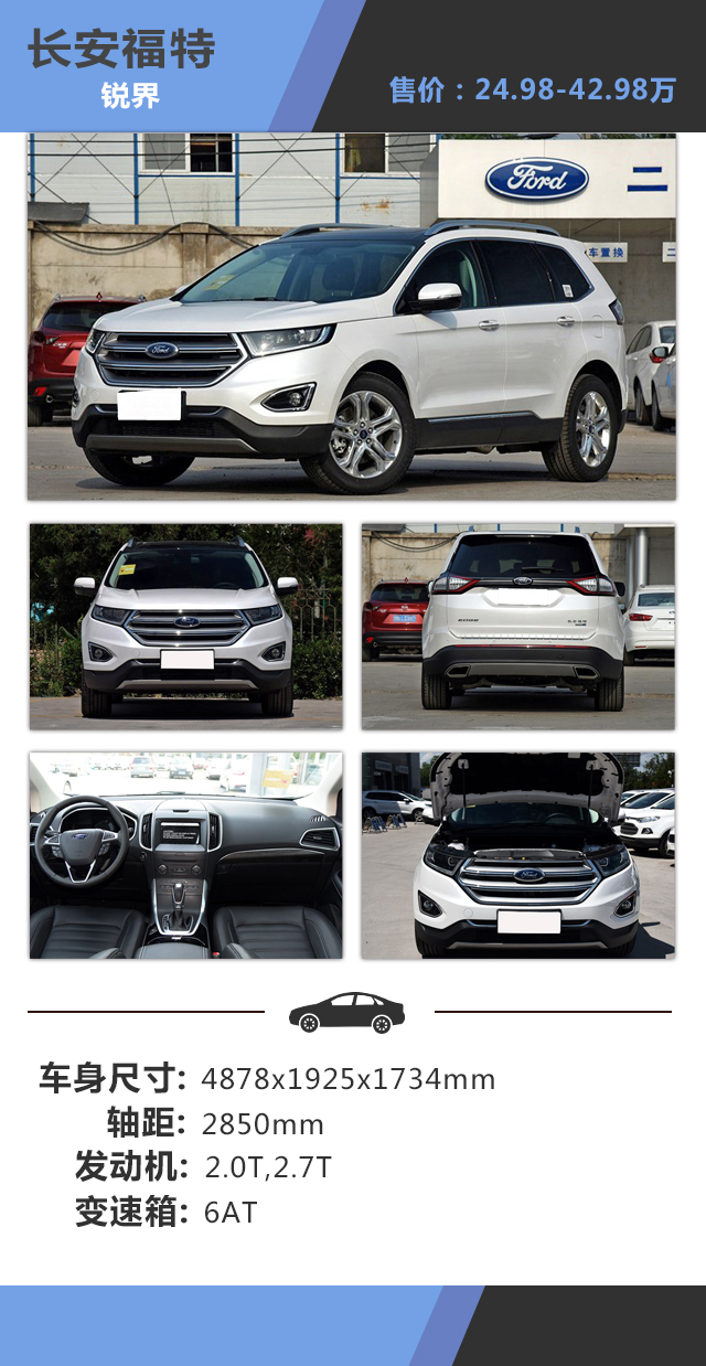 教授点评:假如你父亲是一个东北大汉,相信锐界会是一款很适合他的车;无论是肌肉爆棚的车身线条还是不屈小节的内饰设计;教授相信其都可以让你父亲欢心;六边形的大嘴造型与U型的LED行车灯时刻在散发着一丝狠劲;而车内宽敞的真皮座椅包裹性非常高,对于大汉会是一个福音;同时推荐车型同样拥有非常高的配置,舒适性与安全性都有很好的保障。