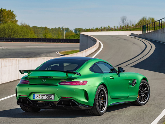 这台AMG GT R还进行了大量的轻量化,如传动轴,变速箱等重量都比之前的AMG GT车型要轻上不少。轻量化的结果是整体动力比AMG GT S要增加40马力。加上这个叫作AMG绿的颜色,简直让人过目不忘啊。