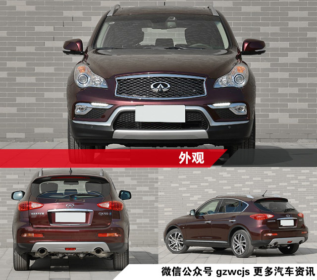 教授点评:在现在这个看脸的时尚,QX50还是有些落伍了,虽然整个外观显得很优雅,同时车身的尺寸也不小,但是远远的看去前脸还是有些小气,不知道是不是设计得比较低矮的缘故呢?
