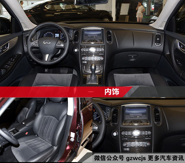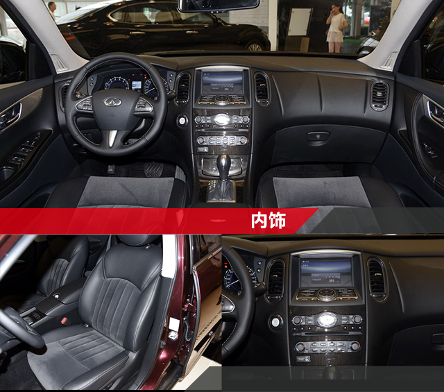 教授点评:QX50的内饰设计还停留在以前的时尚,豪华感与做工都不错,只是木纹的装饰还是比较适合上了年纪的人;假如用上Q50L的双屏设计相信会有很不错的视觉效果。