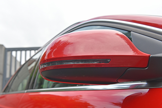 外后视镜集成LED转向灯,全系标配后视镜加热,电动折叠除高配车型外,可自行选装。