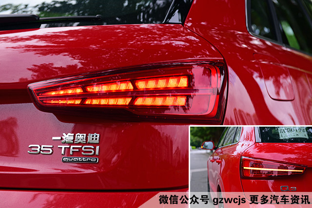 新款Q3的尾灯造型看起来层次感分明,示宽灯、刹车灯和转向灯均为LED光源。