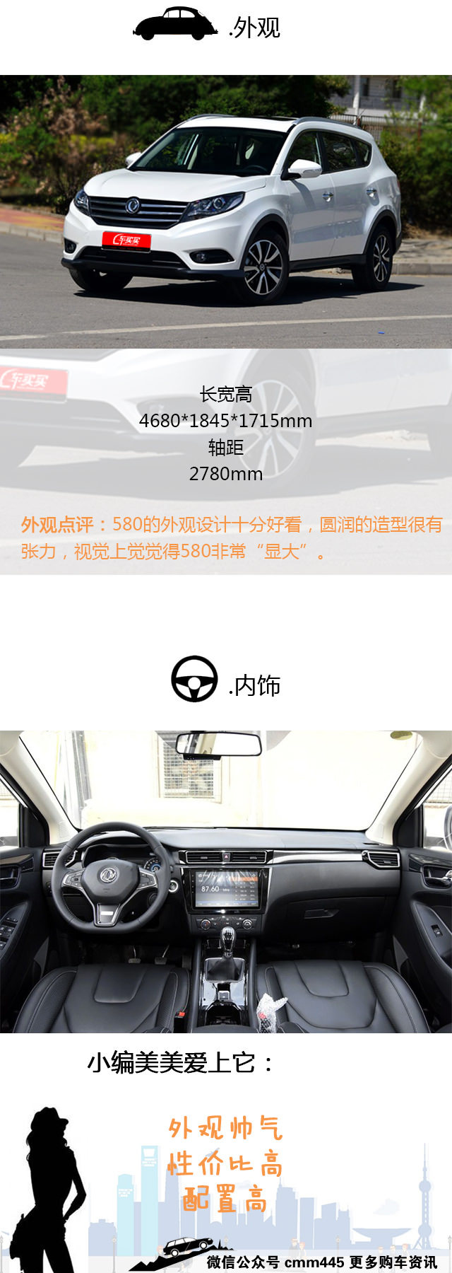 580顶配也不过10万整,所以小编美美觉得还是选择高配1.5T+CVT车型比较合适。