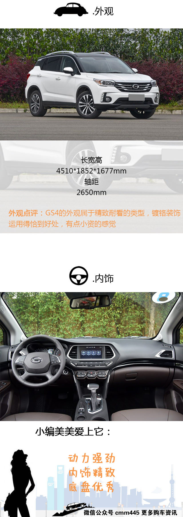 因此小编美美十分推荐GS4的1.5T+DCT双离合变速箱车型,想买一台全面均衡的一台高品质自主SUV车型,GS4不能错过。