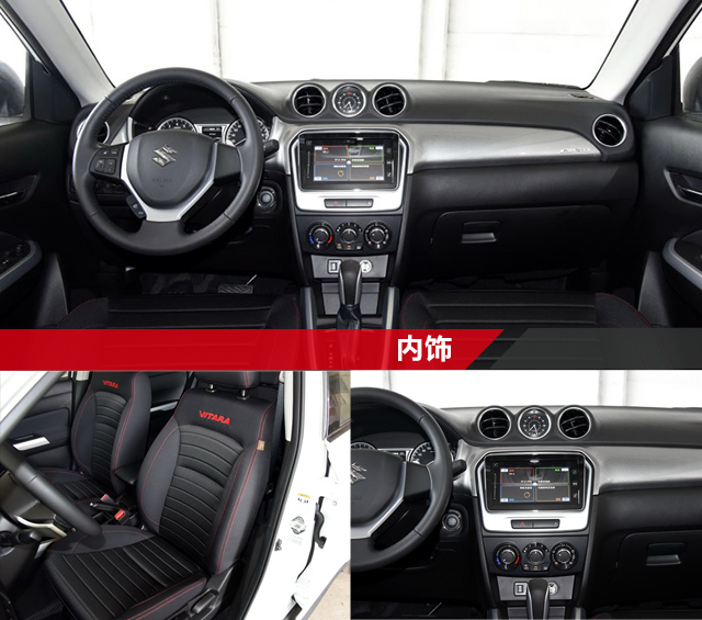 维特拉的内饰设计采用时下非常潮流的设计语言,全黑配色的方案显得非常运动,中控上方的时钟与大面积的银色装饰板的设计都显露出厂家的用心之处,中控顶部面采用搪瓷材质摸起来手感更好。