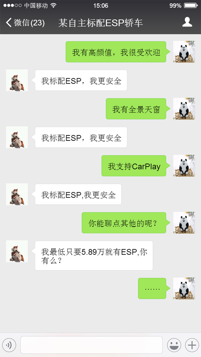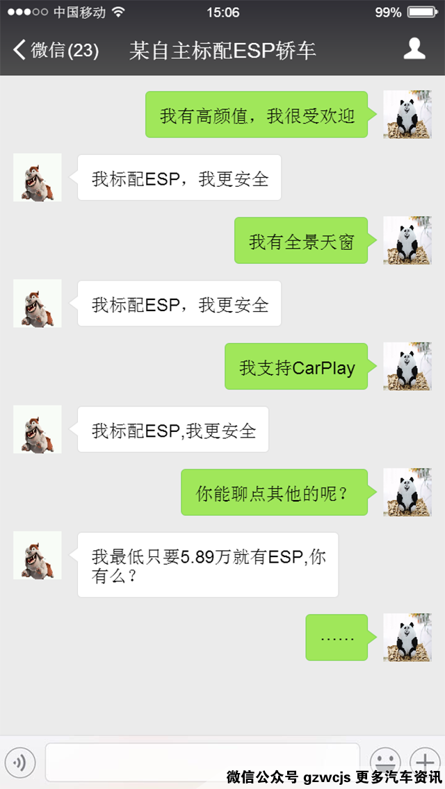 而接下来最红火的自主SUV跟新兴家用轿车之间还发生了一番对话,被教授偷偷的截图下来。
